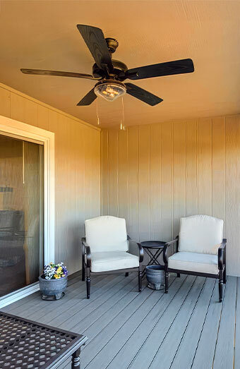 Expert installation of weather-rated ceiling fans for patios, verandas and outdoor living areas, using appropriate outdoor-rated components.